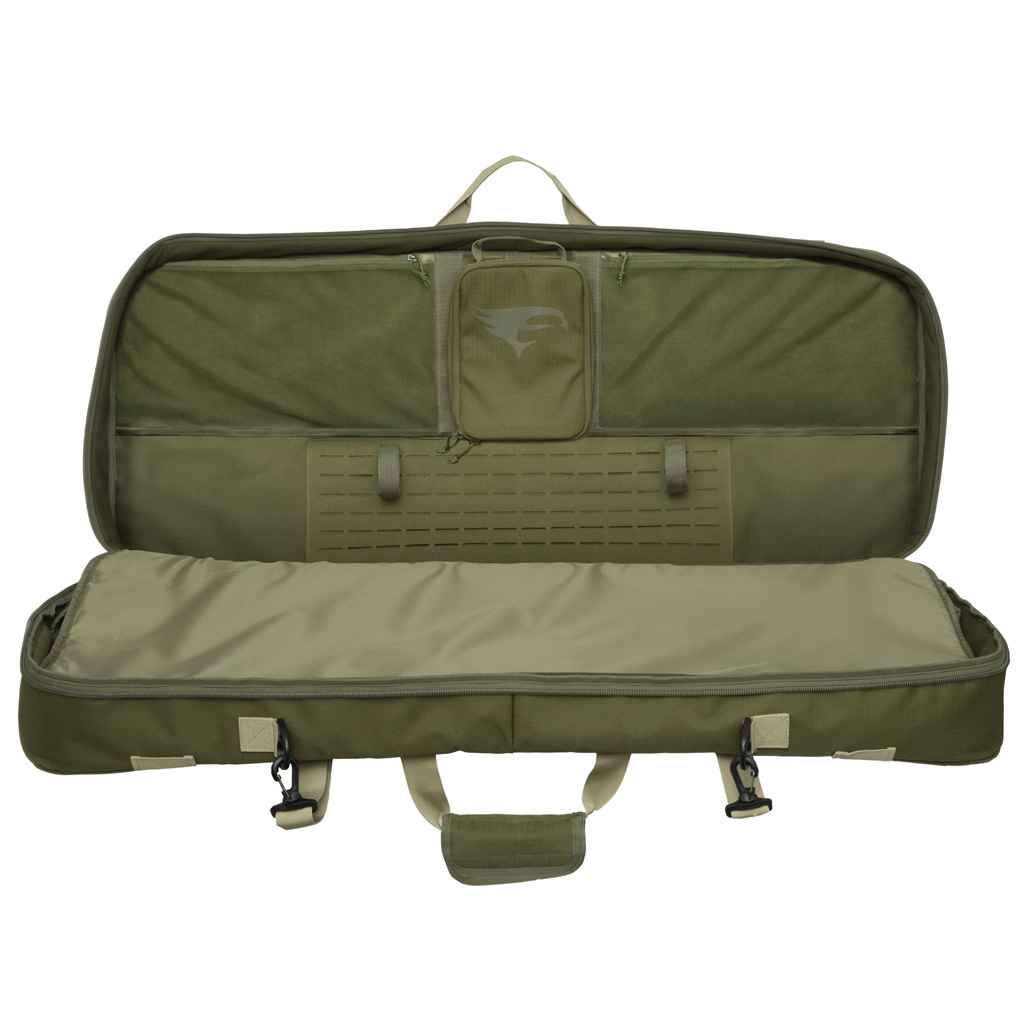 The Elevation Mathews Shield Bow Case is a high-performance storage solution built to protect Mathews bows up to 41 inches in length. With interior dimensions of 41 x 16 x 3.5 inches, this case features a plush interior with a string and cam cradle for secure bow placement. It includes laser-cut MOLLE tie-down straps for custom organization, an internal divider to separate gear from your bow, and a detachable accessory pouch for added convenience. Rugged and versatile, the Shield Bow Case delivers maximum protection and organization for archers who demand top-tier performance.