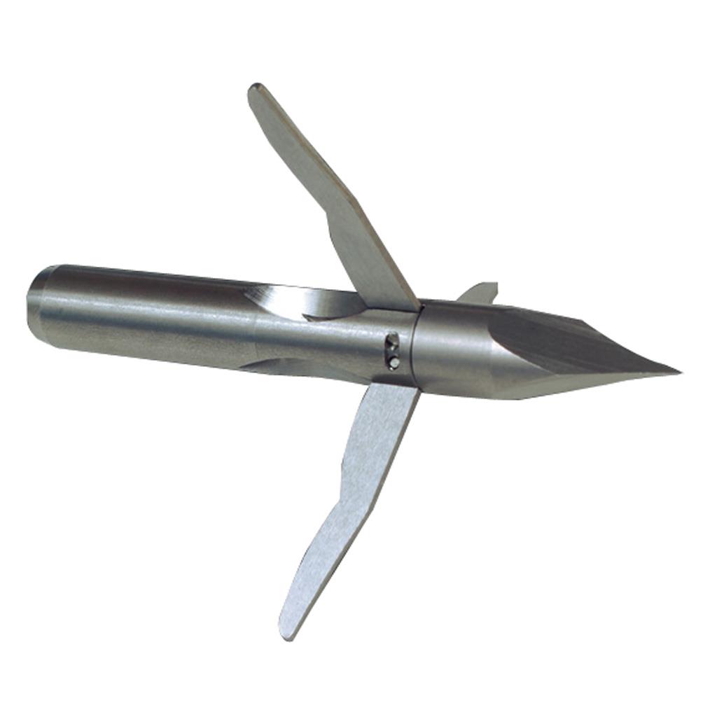 Bow fishing point that has 3 blades that when in the closed position are the size of a penny, which enhances penetration and minimizes planning after entering the water. In the open position they have a 2 3/4″” diameter.