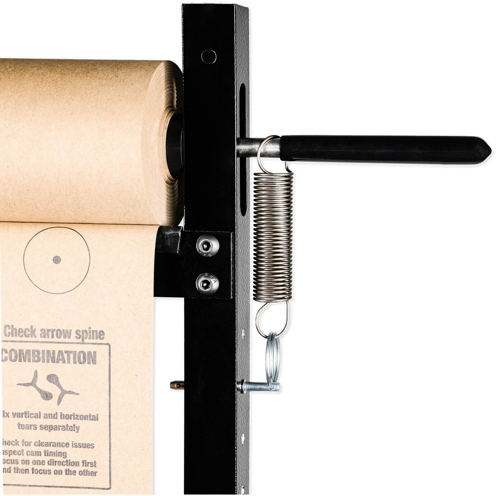 The FlightCheck Paper Tuning System makes bow tuning simple, precise, and frustration-free. Designed with two integrated bow holders, a built-in tool tray, and rubber rollers with adjustable tension, it keeps every tool and accessory within reach while allowing you to wind fresh paper without setting your bow down. Each roll of FlightPaper features crisp tear clarity, printed aiming dots, and built-in tuning instructions for accurate, repeatable results. The FlightCheck arrives pre-assembled with one roll of FlightPaper, and optional accessories such as a floor stand, wall mount, and vise mount offer added versatility.