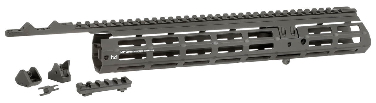 Fits Smith & Wesson 1854 Variants – Heavy-duty ghost ring for fast target acquisition – Wide windage and elevation adjustment range for use with different ammunition – Midwest Industries sight adjustment tool included – Steel rear aperture and front sight post – Features a forward-mounted sling swivel for the use of conventional hunting slings – Includes one 5-slot M-LOK rail section – Slim and lightweight for an enhanced feel – Ultra-rigid design that provides multiple points of contact with the firearm – Constructed from Hard Coat Anodized 6061 Aluminum for a lifetime of service – Features full-length top Picatinny rail for lights lasers or additional accessories – Handguard Length: 13.625 – Handguard Width: 1.640 – MI Patented Components – Made in the USA – Lifetime Warranty – Magpul® and M-LOK are trademarks of Magpul Industries Corp