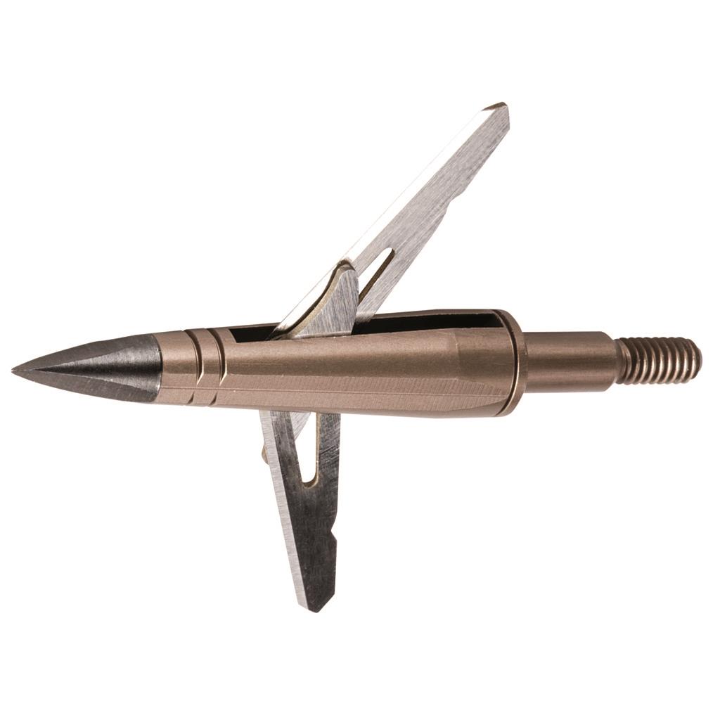 Two blade rear-deploying expandable broadhead that is designed for ultra-high speed bows and crossbows. Simple and rugged design for all hunting conditions. Blades will never open in flight. 1 7/8” cutting diameter.