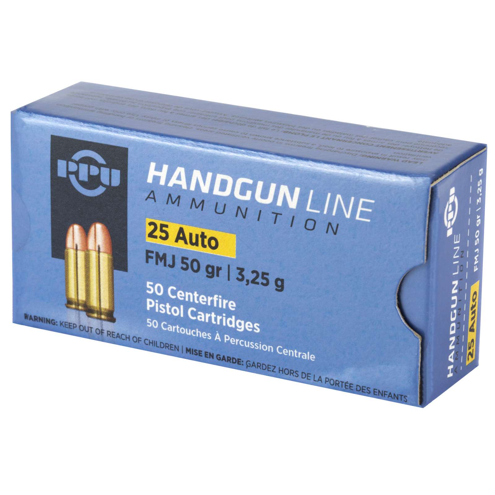 PPU PISTOL AMO 25 AUTO 50GR FMJ 50RD (20 BOXES PER CASE)