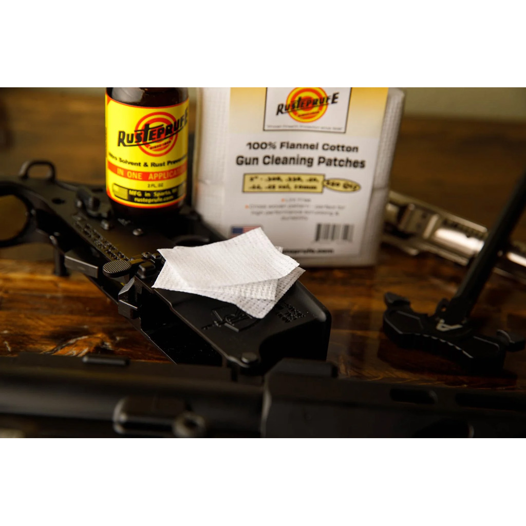 These woven gun cleaning patches are made from 100% flannel cotton and designed to retain solvent and oil more effectively than non-woven materials. The cross-woven construction helps capture fouling and debris for thorough firearm maintenance. A lint-free design prevents fibers from entering the action or barrel during cleaning.
