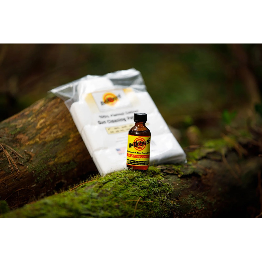 Rusteprufe Bottle provides a solvent and oil formula designed for firearm cleaning, lubrication, and corrosion protection. Applied to a cleaning patch, it helps remove fouling from the bore while leaving a protective barrier against rust. The formula also lubricates and protects the firearm action during routine maintenance. It can also be used to recharge chamois cleaning jars by applying a small amount to the felt disk.