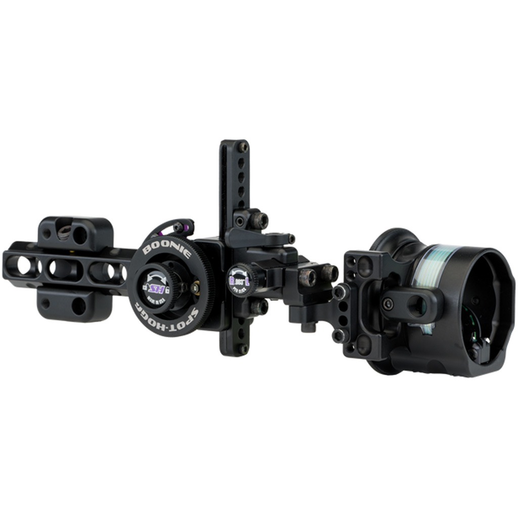 The Boonie DT Features a 4″ Dovetail bar that mounts seamlessly to Bridge Lock bows without the need for additional hardware and includes a bow mount to fit standard sight holes on any riser. The quick-detach design ensures repeatable accuracy and allows for fast, hassle-free removal. With three individually adjustable vertical pins and pointers, the sight offers complete customization, supported by full 1st, 2nd, and 3rd axis adjustments. Its improved micro-adjust windage system, modular construction, and removable yardage components make it ideal for hunters and target archers seeking durable, high-performance gear.