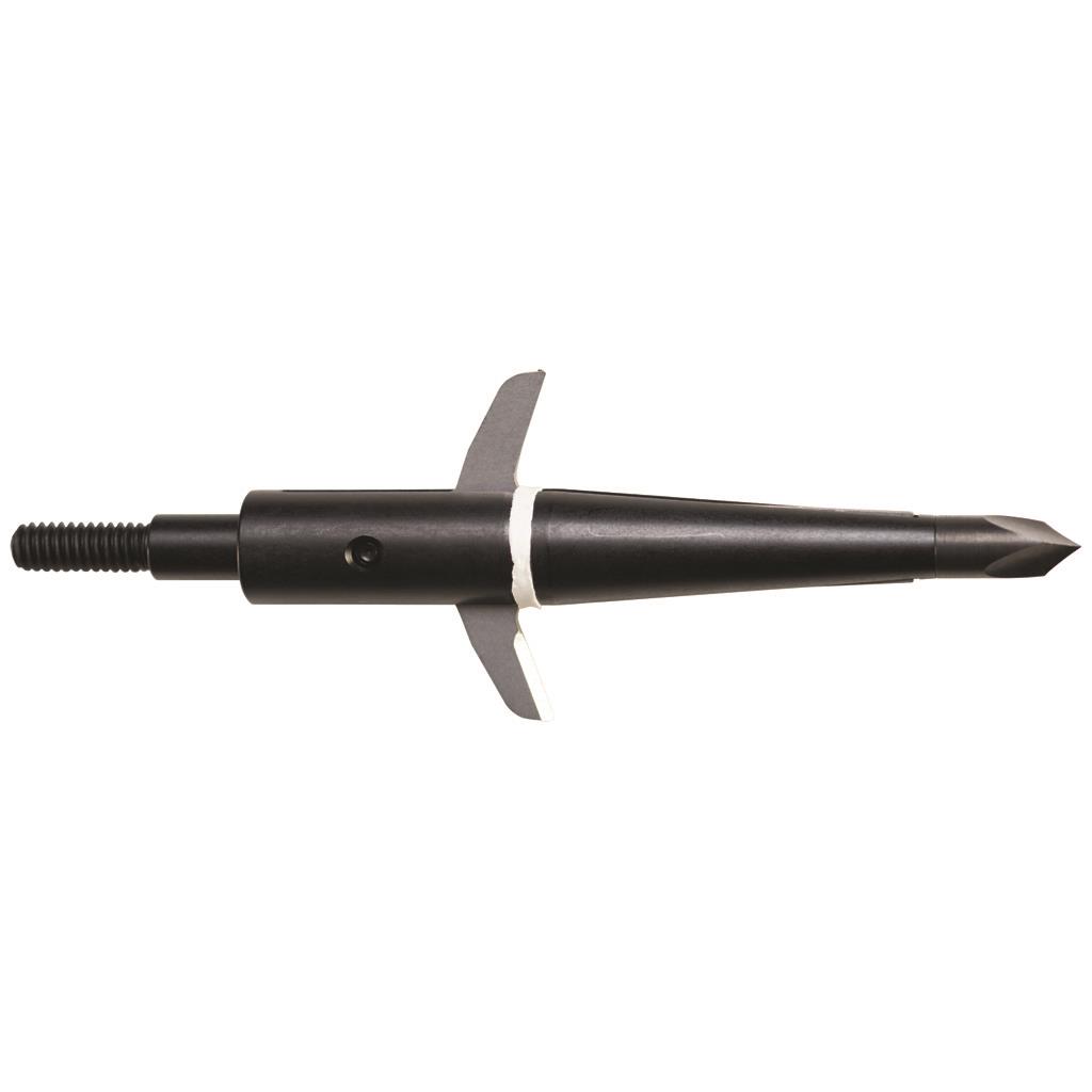 Expandable broadhead designed to fly just like a field point. Uses “wing blades” to open the main blades for reliable deployment. Features .032″ blades, anodized aluminum ferrule, and hardened high-carbon steel point.