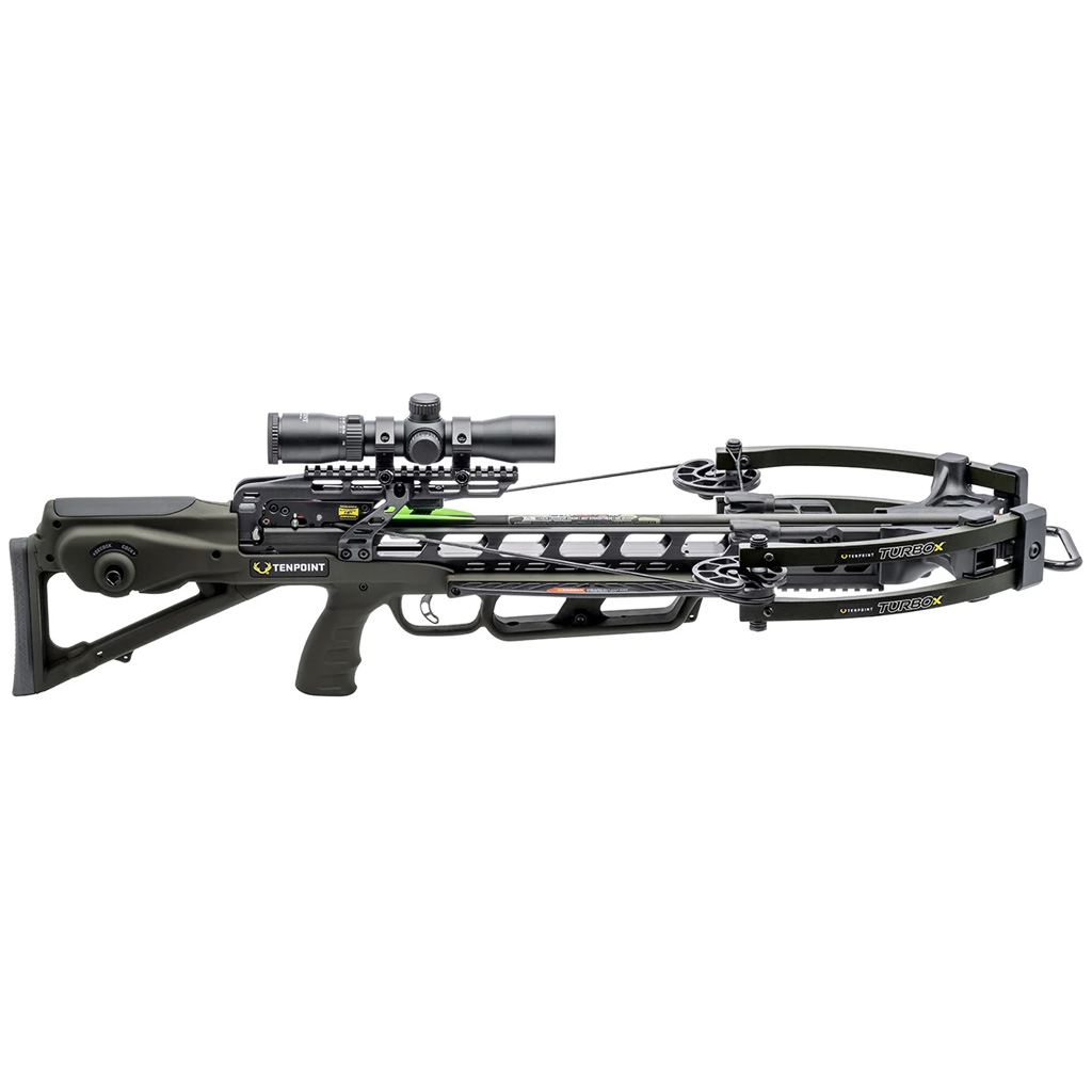 TenPoint Turbo X Crossbow Package ACUslide Rangemaste 100 Scope Moss Green