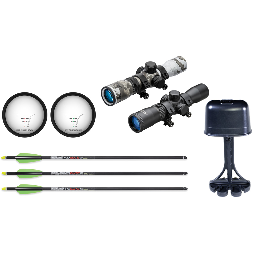 The TenPoint Turbo X Crossbow Package delivers elite performance in a lightweight, compact design built for hunters who demand mobility and precision. Weighing just 6.8 pounds and measuring 33.25 inches in length and 9.5 inches in width, the Turbo X fires bolts at speeds up to 415 FPS. It features the patented ACUslide cocking and de-cocking system for safe, silent operation, along with a 2-stage S2 Trigger for a crisp 3.5-pound pull and consistent down-range accuracy. The included RangeMaster 100 Scope and rugged Scope Struts enhance long-range accuracy out to 100 yards. This high-performance package also includes three Pro Elite 400 Carbon Arrows, an integrated string stop system, quiver, bow hook, and Sentry Bowhanger.
